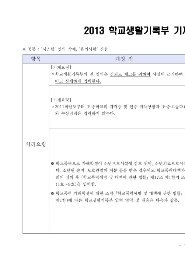 µÈ Á¶Ä¡ »çÇ× ¸ðµÎ Çб³»ýȰ±â·ÏºÎÀÇ ÇØ´ç ¿µ¿ª¿¡ ÀÔ·ÂÇÔ.