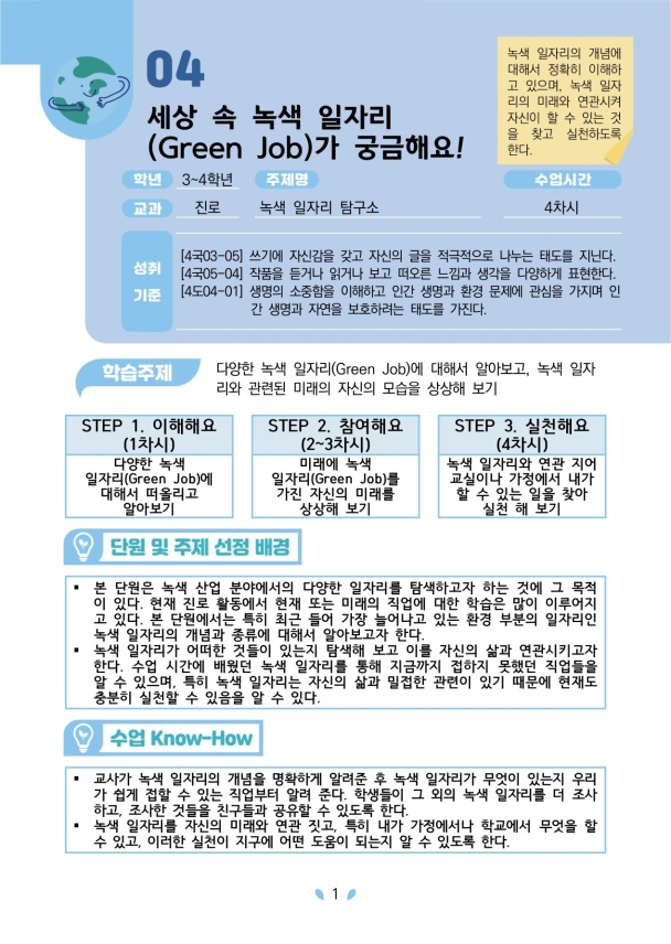 ´Ù¾çÇÑ ³ì»ö ÀÏÀÚ¸®(Green Job)¿¡ ´ëÇØ¼ ¾Ë¾Æº¸°í, ³ì»ö ÀÏÀÚ
